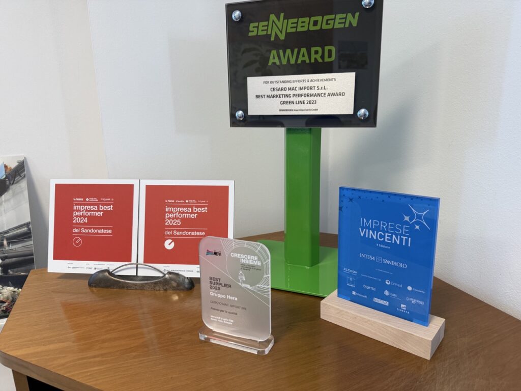 This achievement confirms a solid industrial path built on vision, investments and the value of people. It also adds to a series of important awards collected in recent years, including the Best Supplier Award 2025 from the Hera Group, which acknowledged the excellence of our service and environmental technologies; the SENNEBOGEN Best Marketing Performance Award (Green Line 2023); and the national recognition “Imprese Vincenti” by Intesa Sanpaolo. At a local level, Cesaro Mac Import was also named Best Performer Company of the Sandonatese area in both 2024 and 2025, confirming continuity and sustainable growth over time.